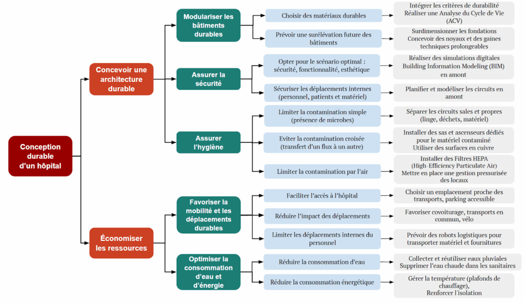 La Figure 4 présente un récapitulatif des considérations à prendre en compte lors de la conception hospitalière.