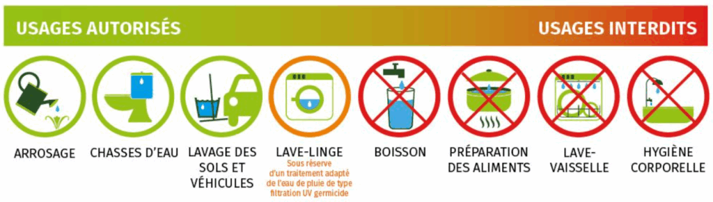 Figure 10 : Usages autorisés de l’eau de pluie (Source : SIMOP) [34]