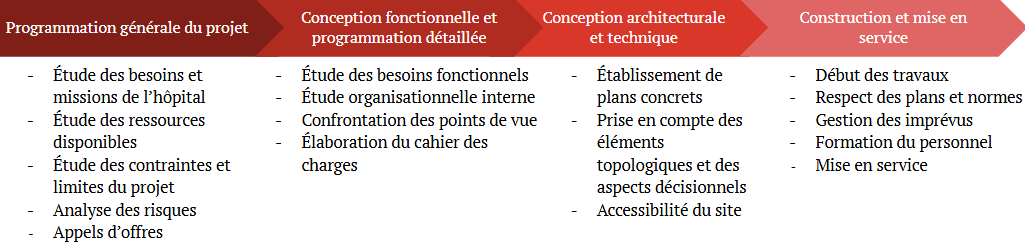 La Figure 1 ci-dessous résume les différentes phases de la conception hospitalière.