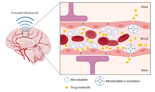 Dans le contexte précis du cerveau et de la BHE, les UST proposent une contribution qui n'est pas disponible via d'autres techniques : l'opportunité d'ouvrir temporairement et localement cette barrière pour faciliter le transfert de molécules thérapeutiques qui ne pénètrent généralement pas dans le tissu cérébral (anticorps thérapeutiques, vecteurs de thérapie génique, oligonucléotides antisens, etc.). En associant des impulsions ultrasonores de faible puissance (LIPUS) et l'administration de microbulles de contraste, on peut créer une contrainte mécanique maîtrisée sur la paroi des capillaires cérébraux, ouvrir temporairement les jonctions cellulaires, puis les laisser se refermer d'elles-mêmes. Cette méthode répond à une nécessité médicale fondamentale non comblée : le traitement efficace des tumeurs cérébrales ou des affections neurodégénératives en ciblant le cerveau sans chirurgie lourde.