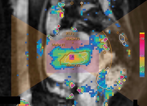 Figure 6 : Interface de contrôle de la température par IRM d’un traitement par HIFU de tumeur prostatique [19]