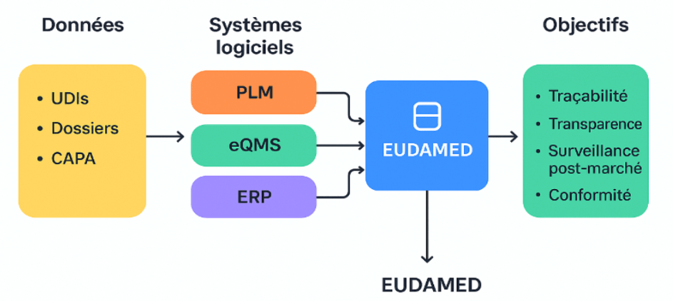 | EUDAMED | Enregistrement réglementaire UE | Mise sur le marché | UDI, SRN, transparence, traçabilité | Déploiement encore partiel ; dépend des autorités ; ne remplace pas un outil interne ; pas un système de gestion documentaire |