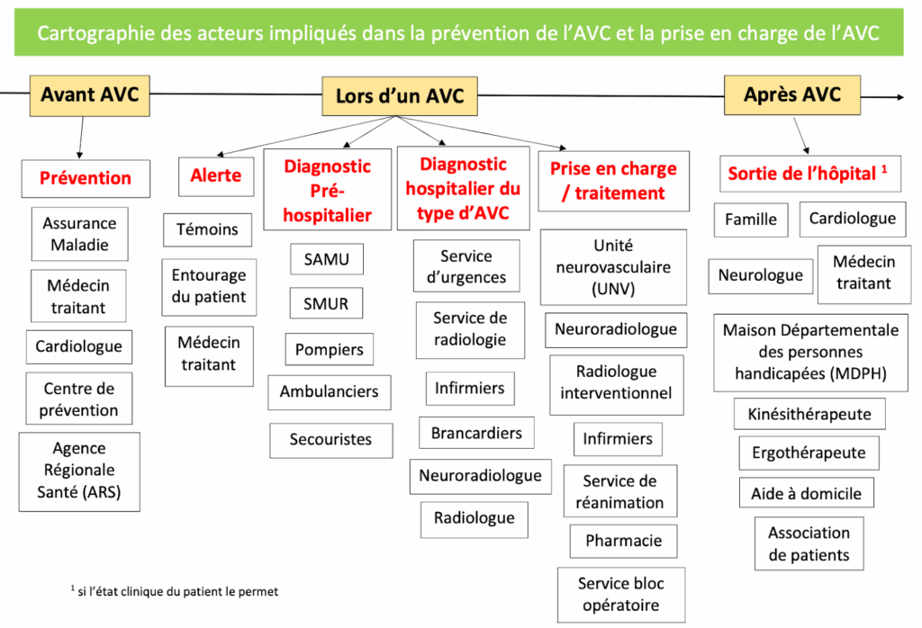 Figure 1 : Cartographie des acteurs impliqués dans la prise en charge de l’AVC (Source : Auteur.e.s)