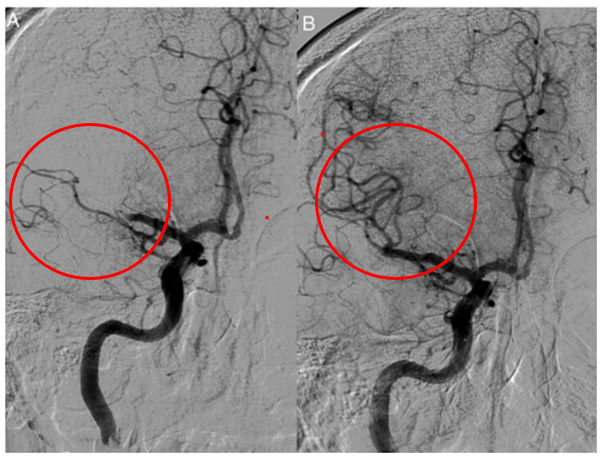 Différentes artères peuvent être touchées, et il en découle une distinction des types d’AVC, parmi lesquels on trouve : l’infarctus cérébral carotidien, l’infarctus cérébral vertébrobasilaire, les petits infarctus profonds ou « lacunes » profondes, l’infarctus cérébral jonctionnel ou encore la thrombose veineuse cérébrale [14].