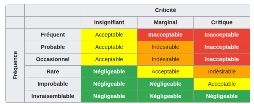 - L’évaluation des risques, au cours de laquelle chaque risque est analysé en fonction de sa probabilité de survenue et de la gravité potentielle de ses conséquences, afin d’en déterminer la criticité et l’acceptabilité au regard du rapport bénéfice/risque ;