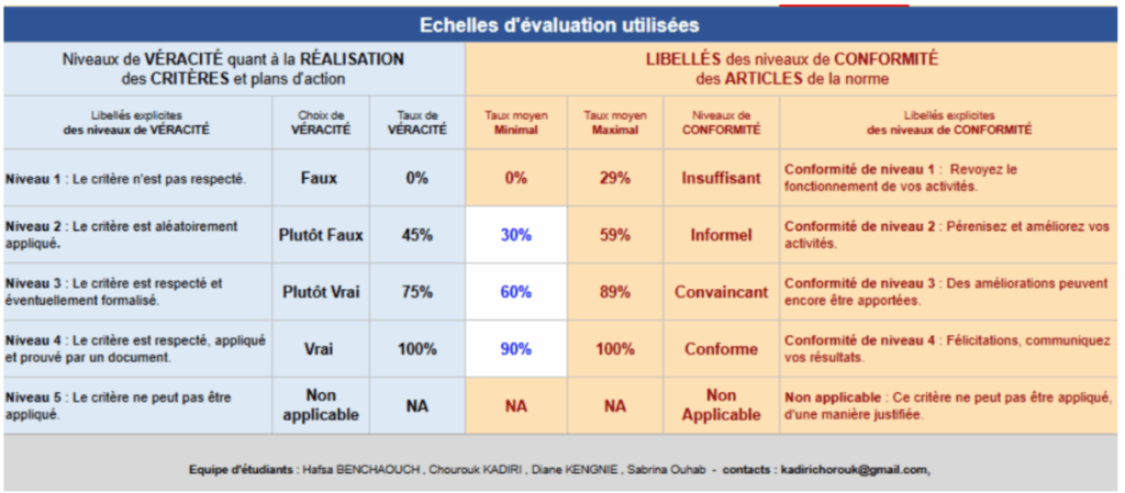 Figure 8 : Critères et échelle d’évaluation [source : Auteures]