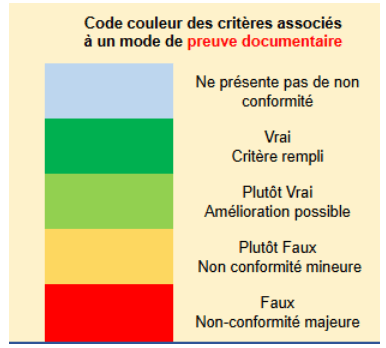Chaque onglet contient des check-lists et des critères d’évaluation(Figure 8) permettant d’indiquer si les exigences sont conformes, partiellement conformes ou non conformes. Ces éléments sont accompagnés de notes explicatives destinées à clarifier les attentes du guide et à aider l’utilisateur dans son interprétation. Une illustration de la structure de l’outil et de l’articulation entre les différents onglets est présentée en figure afin d’en faciliter la compréhension.